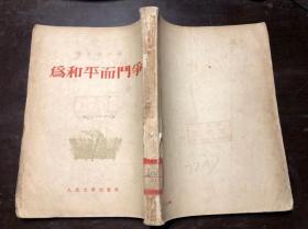 ZC13949 为和平而斗争· 全一册 竖版右翻繁体 1953年10月 人民文学出版社 一版二印 60000册