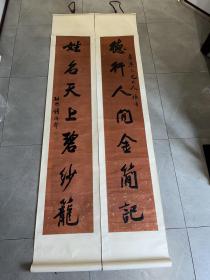 大典补遗著录清末无锡国子生钱鸿声洒金红对163*31*2 钱鸿声,字听初,清末无锡人,国子生。器宇轩昂,中年游汴梁,工书法,学王、米,名噪一时。(《国朝书画家 笔录》《中国美术家人名补遗辞典》)。