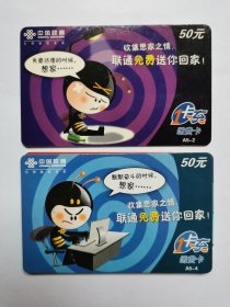 收集思家之情联通免费送你回家。中国移动通信手机充值卡电话缴费卡中国联通缴费卡六合卡中国电信201月票卡,2元一枚。