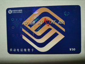 沟通从心开始50元。中国移动通信手机充值卡电话缴费卡中国联通缴费卡六合卡中国电信201月票卡,2元一枚。