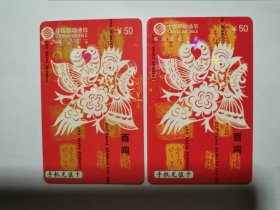 酉鸡。中国移动通信手机充值卡电话缴费卡中国联通缴费卡六合卡中国电信201月票卡,2元一枚。