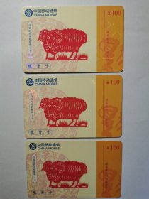 中国民间剪纸艺术羊。中国移动通信手机充值卡电话缴费卡中国联通缴费卡六合卡中国电信201月票卡,2元一枚。