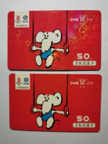 2008鼠于你。中国移动通信手机充值卡电话缴费卡中国联通缴费卡六合卡中国电信201月票卡,2元一枚。