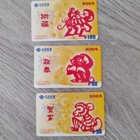 电话卡——中国联通充值缴费卡 2004 纳福/迎春/贺岁 ¥100/¥50 (3枚合售)