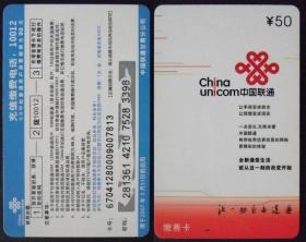中国联通I缴费卡(50元1张)