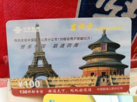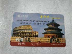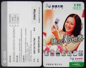 旧电话卡 中国联通缴费卡 主题:随心看世界