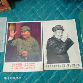 毛泽东毛主席万岁老式宣传画二张合售