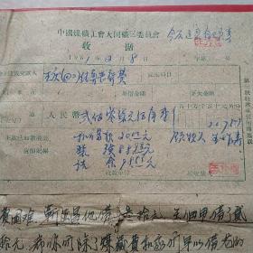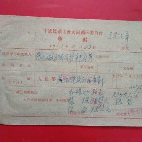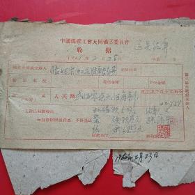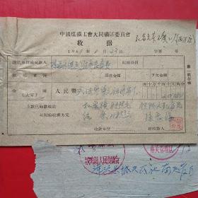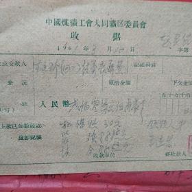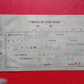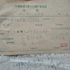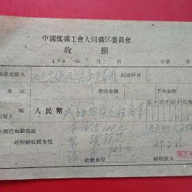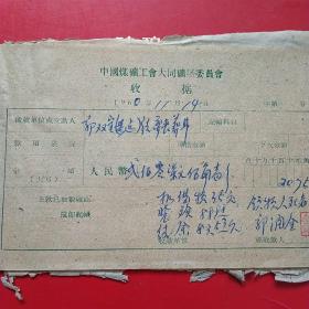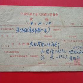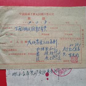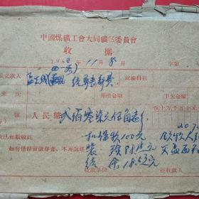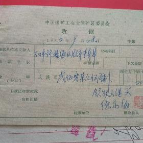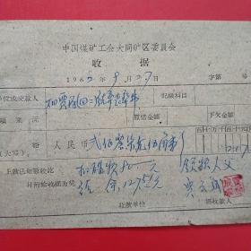 1962年10月15日,铁万库,1960年5月大同白洞矿矿难去世684人之一,建国自来发生最大的矿难,赔偿费单据2张,大同市人(16-4)(生日票据,大同煤矿,手写票据)