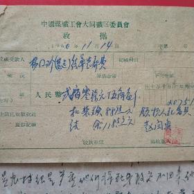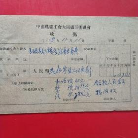 1960年11月3日,连海成,1960年5月大同白洞矿矿难去世684人之一,建国自来发生最大的矿难,赔偿费单据3张,忻定县人(12-4)(生日票据,大同煤矿,手写票据)