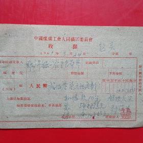 1961年3月21日,付长喜,1960年5月大同白洞矿矿难去世684人之一,建国自来发生最大的矿难,赔偿费单据2张,大同口泉人(12-1)(生日票据,大同煤矿,手写票据)