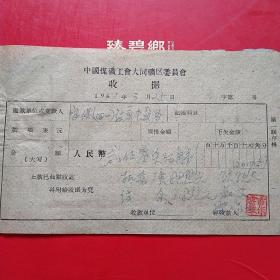 1962年10月4日,王喜才,1960年5月大同白洞矿矿难去世684人之一,建国自来发生最大的矿难,赔偿费单据2张,浑源县人(16-4)(生日票据,大同煤矿,手写票据)