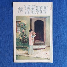 民国印刷品诗文人物仕女国画丁悚漫画题二分春色图陈遽题诗便嘱钝根画于中华图书馆甲寅仲秋读慕琴画往往有诗惜予笔不能达其意怀旧纸制品收藏