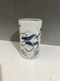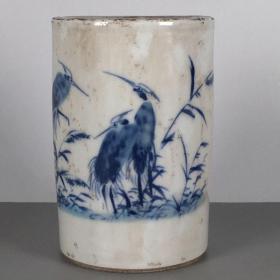 民国八大山人青花山水瓷笔筒--.