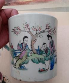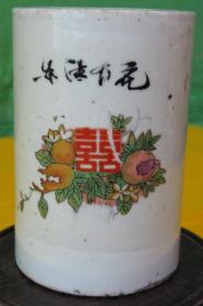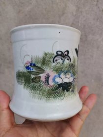 收来的民国手绘瓷笔筒