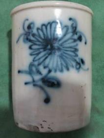 民国青花花草瓷笔筒--保老保真.