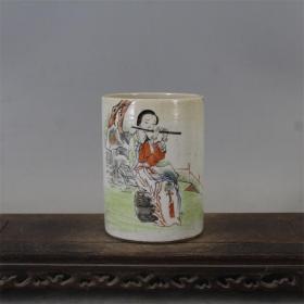 民国粉彩老瓷笔筒仕女笔筒