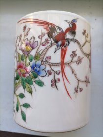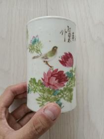 民国粉彩花鸟瓷笔筒