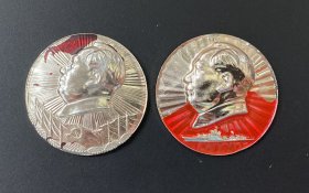 毛主席像章:脱漆残品章2枚