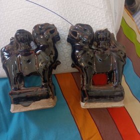 狮子油灯一对儿,残品缺油灯盘