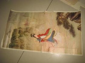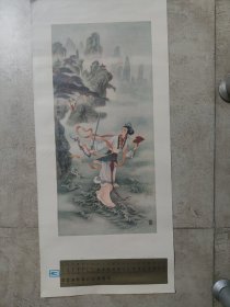 老挂历画工笔仕女1张 虹桥赠珠 任率英绘瑕疵品 外围大致尺寸52 × 37 cm