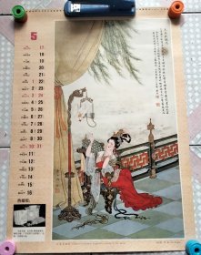 老挂历画工笔仕女1张 华三川绘 挂历封面1张