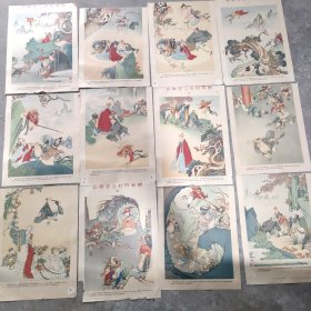 孙悟空三打白骨精 六十年代经典年画 十二幅(四条屏被裁开 具体看图 品自定 包老)