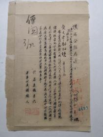 1950年3元23日陕西公路局通令--关于宝鸡工务段职工朱其秀,傅成新到妓院嫖妓被记过处分通报。代局长张字六,军事代表钱维人钤印。背面补,请见图片。