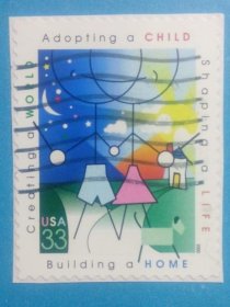 美国邮票2000年收养儿童把握生活构建家庭不干胶信销剪片1全