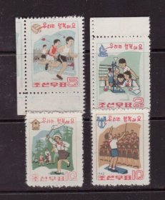 朝鲜邮票1963年儿童幸福生活新4全