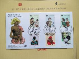《联合国1985年联合国儿童基金会 儿童生活 母乳喂养邮票首日封 品相如图》澜2308-8