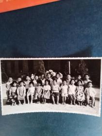 民国时期幼儿园的儿童第一回毕业纪念老师学生合影 老照片