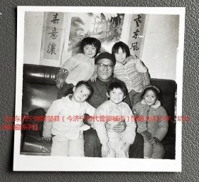 老照片:山东邹县(今邹城市)—邹县北关幼儿园,小朋友与戴眼镜的老爷爷。时间约1987年(参照同一批)。【山东济宁地区邹县(今济宁市代管邹城市)邹县北关小学、幼儿园旧藏系列】