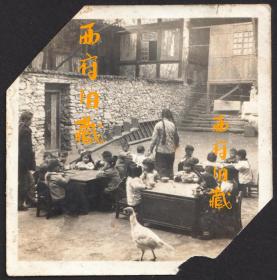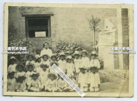 1918-1919年美南浸信会教会在河南开封设立的学校,幼儿园中幼童合影老照片一张。8.3X6厘米,泛银。 来自甘博的朋友, 沪江大学教授普天德博士(Dr.Gordon Poteat )收藏。