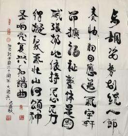 B15302号书法 黄庭坚 松风阁 69×69cm 作者:杨建安 河南省登封市颍阳镇 河南省襄阳市 襄城老年书画院院士 首届全国精品书画大赛获奖 依山筑阁见平川,夜阑箕斗插屋椽。我来名之意适然。老松魁梧数百年,
