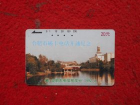 田村卡:《合肥市磁卡电话开通纪念(面值20元)》【合肥市电信局发行(1992.5),品如图】