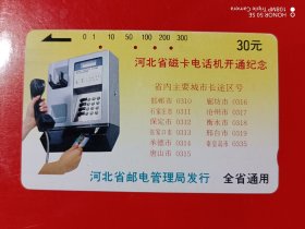 河北地方电话卡(旧田村卡)无(2-2)河北省磁卡电话开通纪念