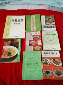 北京全聚德名菜谱,中国南北名菜谱,粤菜荟萃,淮扬菜点选编,烹饪技术教材(山东烟台),烹调技术,佳肴集萃(制作说明),鲁菜烹调技术,共8本合售。