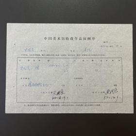 【中国美术馆收藏史料】史国良(中国当代著名人物画家)·签名·1980年作品《人物肖像之一/之二》·《中国美术馆收藏作品致酬单》·一页·(收藏金额为人民币90/90元)·150