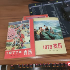 《1977年农历 (书封有泥垢,两页左右上有斑渍,两页左右上有手写字迹,后6页左右的下边沿有轻微裂伤)》《1978年农历 (内前边一页上有墨印)》2本合售。两本书内都完整不缺页