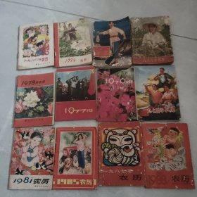 1974年,1975年,1976年,1977,1983年,1985年,1987年,1988年,1991年,1996年,1997年 (农历,农家历,通书,历书,实用通书,民历)13本合售