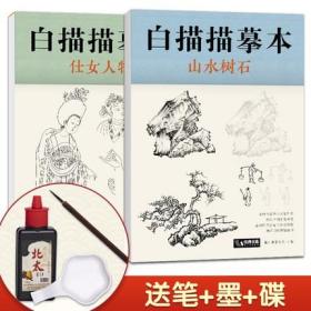 【送笔墨碟】白描描摹本仕女人物 山水树石 中国工笔画白描底稿临摹本画画学零基础入门书教材超级线条浅印勾线名家底稿图大全美术