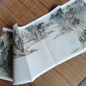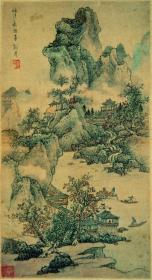 张大千 青绿山水人物图 (北京保利限量精臻1:1复制) 用德国 cruse 扫描仪生产。