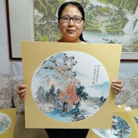 刘彦秀精品硬卡山水,尺寸50*50厘米,有合影保真收藏!图六有瑕疵 山东潍坊人,毕业于中央美院(北京),擅长写意山水,花鸟,人物,毕业后历任山东省天艺轩书画院教授、花鸟画大师。山东省天艺轩书画院艺术委员会主任,中国美术家协会会员,当代工笔书画学会理事,山东省宋代山水研究会顾问,山东省花鸟协会理事,北京市书画联谊会顾问,作品《天路》为日本东京博物馆收藏。