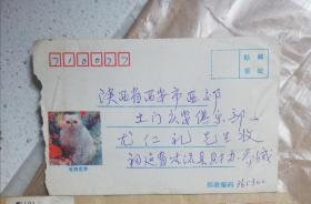 艺术大师钱君匋亲笔签赠寄给《书法》报社编辑王宇仁的贺卡一张,有信封,落款加一“拜”字,可见名家谦恭有礼,君子风范。另外赠送《君匋艺术院建院五周年》纪念封,上贴猴票二枚,带戳记二枚。