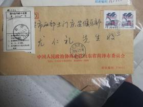 名人信扎:山东嘉祥县人民医院夏惠民寄给已故大书法家、河北省书法家协会副主席巴根汝的信,正贴长城普票50分三连票,山东-河北,裸封,美术图案老虎,1998.4.30,gyx22105