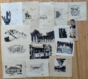 5573__周君言钢笔画。他是同济大学建筑系的美术教师,擅长钢笔画创作,这些作品出自他1996年出版的《中国古代建筑名胜钢笔画写生》和《周君言钢笔画选》中。插图15张。15×11/6×6尺寸不一