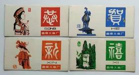 老火柴商标火花文化收藏曲靖火柴厂恭贺新喜卡标4X1 15#袋