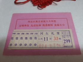 【稀缺品】1986年3月4日天津河东礼堂入场卷《河东区教育系统85年度文明单位先进集体优秀教师表彰大会》