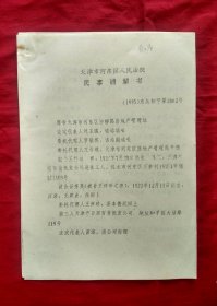 司法史料(自编号298,轻折一下交寄)---天津市河东区人民法院民事调解书【腾房案】