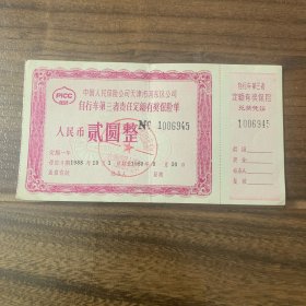 中国人民保险公司天津市河东区公司自行车第三者责任定额有奖保险单